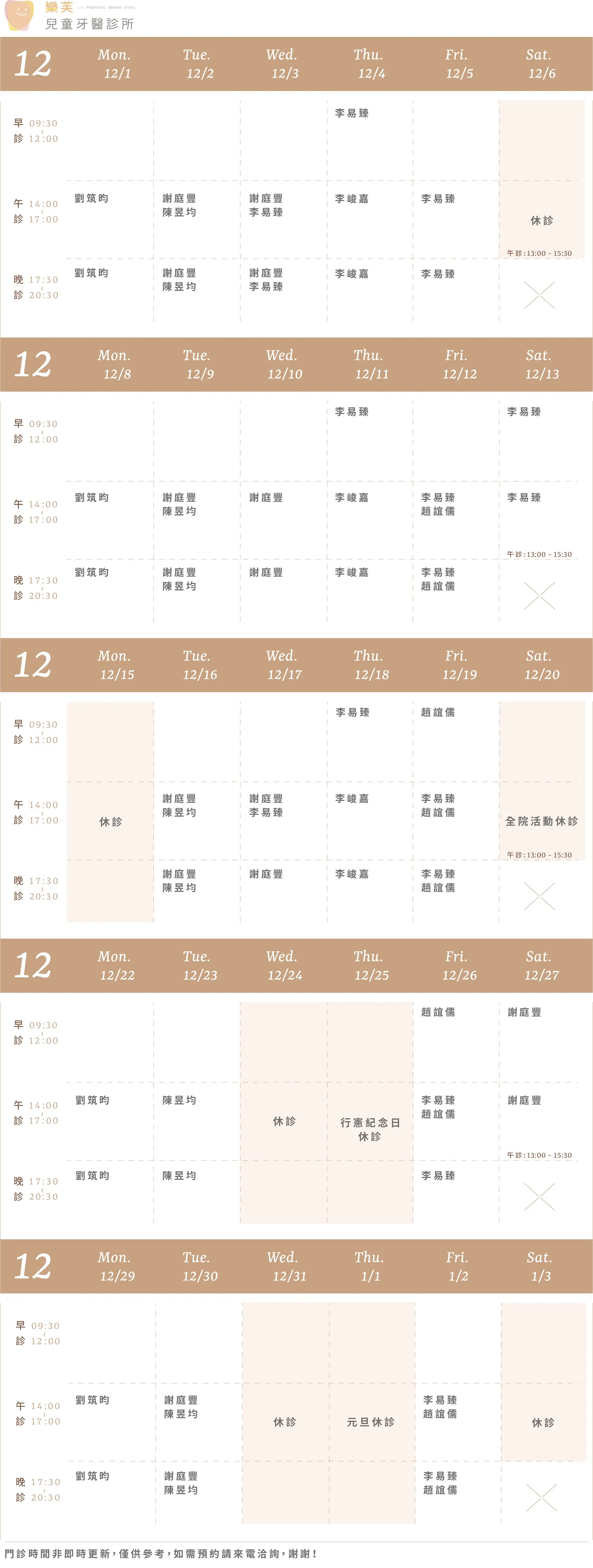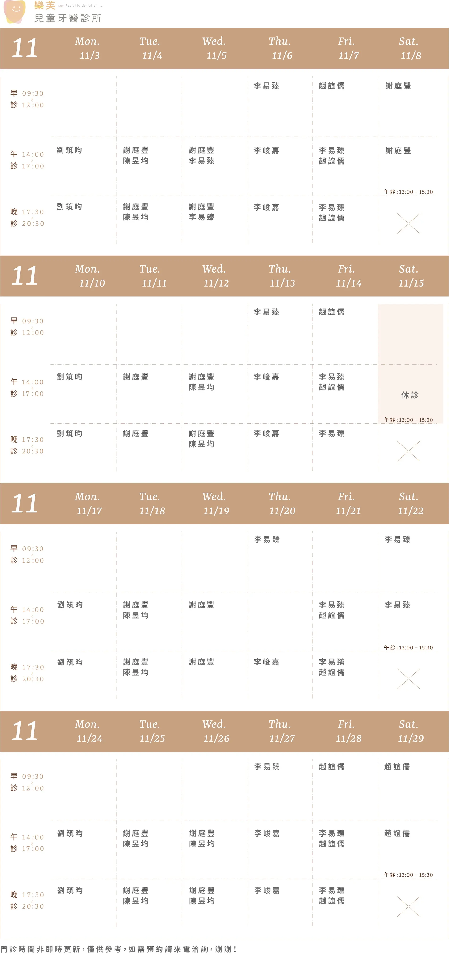 樂芙兒童牙醫 Luv pediatric dental clinic 樂芙兒童牙醫 Feature 分院特色 Because of the trust built throughout time, I chose Luv pediatric dental clinic. 桃園樂芙兒童牙醫擁有親切溫柔的兒童牙醫師群,以及適合孩子看牙的友善空間環境,帶著孩子一步步從小學習養成好的牙齒保健習慣,並擁有一口健康的好牙。 Treatment 診療項目 兒童牙醫專科 Equipment 設備介紹 舒眠麻醉 透過電腦的控制將鎮靜藥物注入體內的一種過程,依據每位兒童不同的身高體重,進而精密的計算出兒童能夠承受最低限度的麻醉劑量,讓兒童處於睡覺的狀態下去進行牙科治療,協同麻醉專科醫師全程監控生命徵象。 束縛版 治療過程,若孩童持續無法配合看診,則建議以束縛板保護小朋友。避免小朋友在治療過程中,因為害怕而亂動, 導致尖銳的器械傷及口內、臉頰及舌頭,甚至吞入牙科器械。 笑氣鎮靜 牙科常用30%~50%笑氣合併70%~50%氧氣,高安全性,能協助孩童在看牙時消除緊張、恐懼及憂慮感,使孩童保持愉快且放鬆的就診狀態。 Environment 環境介紹 樂芙兒童牙醫以家的概念為環境設計主題,陪伴孩子一同成長,並從小培養正確牙齒保健觀念,讓看牙也能成為一種遊樂。 A sense of comfort and ease,just like being at home. X光室 候診區 治療室 X光室 候診區 治療室 Dentist 醫療團隊 李峻嘉 兒童牙醫專任醫師 趙誼儒 衛福部兒童牙醫專科醫師 陳昱均 兒童牙醫專任醫師 謝庭豐 衛福部兒童牙醫專科醫師 劉筑昀 衛福部兒童牙醫專科醫師 李易臻 衛福部兒童牙醫專科醫師 Schedule 門診時間 本月下月 Information 診所資訊 03 363 8300 桃園市八德區廣豐三街8號1樓 Google Map 自行線上約診 客服協助預約