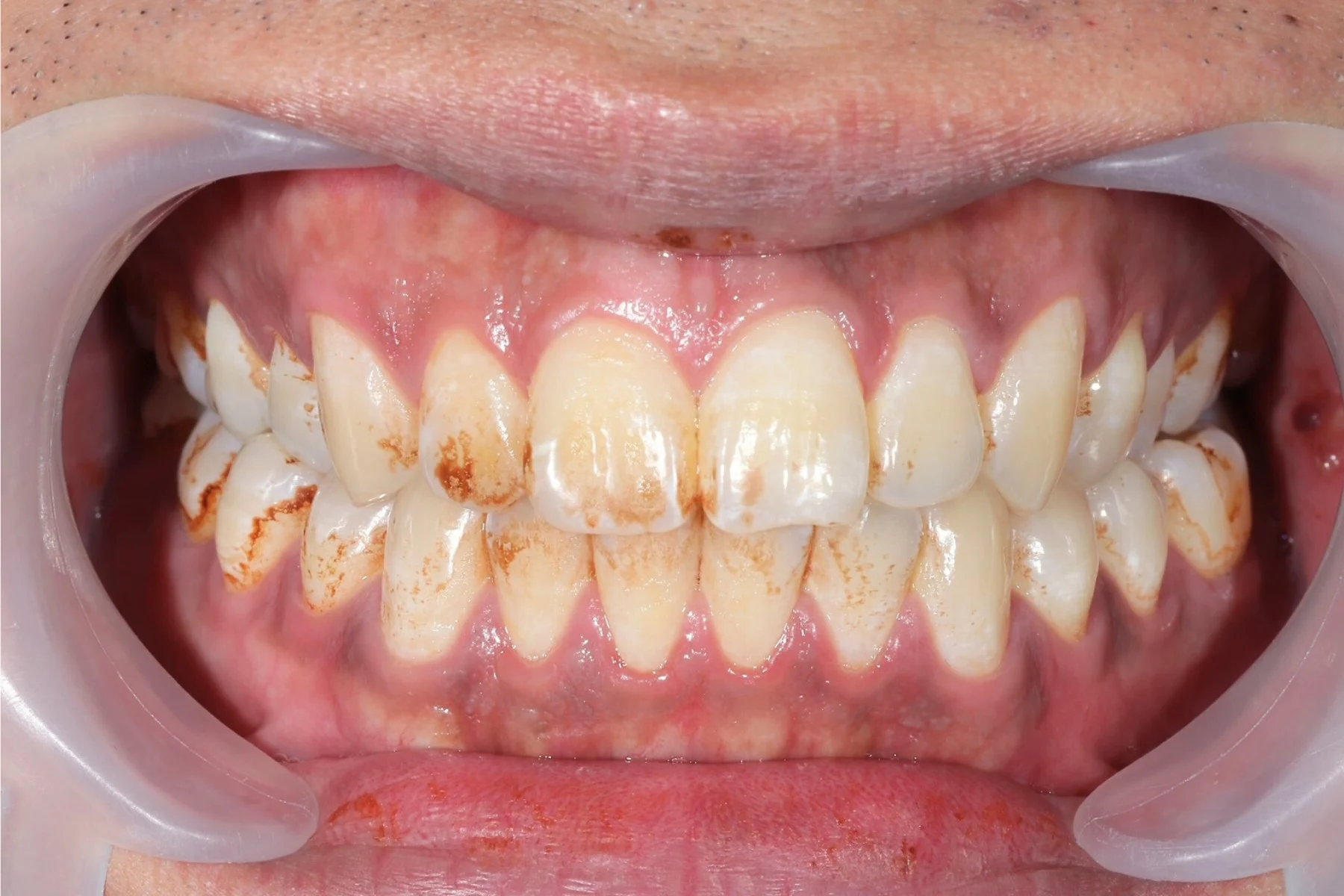 牙齒美白/噴砂美白 「其實牙齒沒有壞,只是每次照鏡子,總覺得黃黃的,看起來不乾淨,拍照也很沒自信。」初次諮詢時,L先生這麼描述他的困擾。長年喝咖啡與偶爾抽菸的習慣,讓他的牙齒逐漸染上一層深淺不一的黃褐色,尤其是前牙區域,染色明顯,讓他總忍不住遮掩微笑。 患者基本側寫 姓名| L先生 年齡| 26 主訴 牙齒表面有喝咖啡、抽菸造成的外部染色,影響外觀與自信 治療需求 改善牙齒色澤,讓笑容看起來更乾淨清爽 治療內容 主治醫師| 陳昕 診療項目| 噴砂美白 牙齒美白 治療時間| 單次療程 治療步驟 1.醫師諮詢與檢查:經由醫師判斷,確認L先生牙齒變色為外源性染色,主要因為長期飲用咖啡與茶以及抽菸造成,牙齒本質健康,無需進一步漂白處理。 2.規劃噴砂區域:根據L先生的牙齒狀況與個人需求,醫師規劃「全口噴砂美白」,包含上下前牙及後牙區域,提升整體視覺清潔感。 3.噴砂處理:採用非侵入性的噴砂美白技術,透過高壓空氣將碳酸氫鈉細粉與水霧均勻混合,形成強勁細緻的水柱,精準地清除牙齒表面的沉積色素與牙菌斑。 術前術後對比 患者治療心得 L先生表示,整個療程快速、舒適,幾乎無任何不適感。「做完噴砂美白後照鏡子,真的有差!笑起來乾淨很多,看起來更有精神,也更敢開口說話了。」他也提到,沒想到只需一個簡單療程,就能帶來明顯的外觀改變,讓他非常滿意。 醫師建議 1. 建議每6個月~1年依染色情況回診一次,可維持牙齒潔白。 2. 治療後應減少染色性飲食(如紅酒、咖啡),並落實刷牙與使用牙線習慣,有助延長效果。 3. 噴砂美白為非侵入性療程,不會損傷牙齒結構,也不會造成敏感,適合多數患者使用。 適應症/禁忌症/處置優缺點
