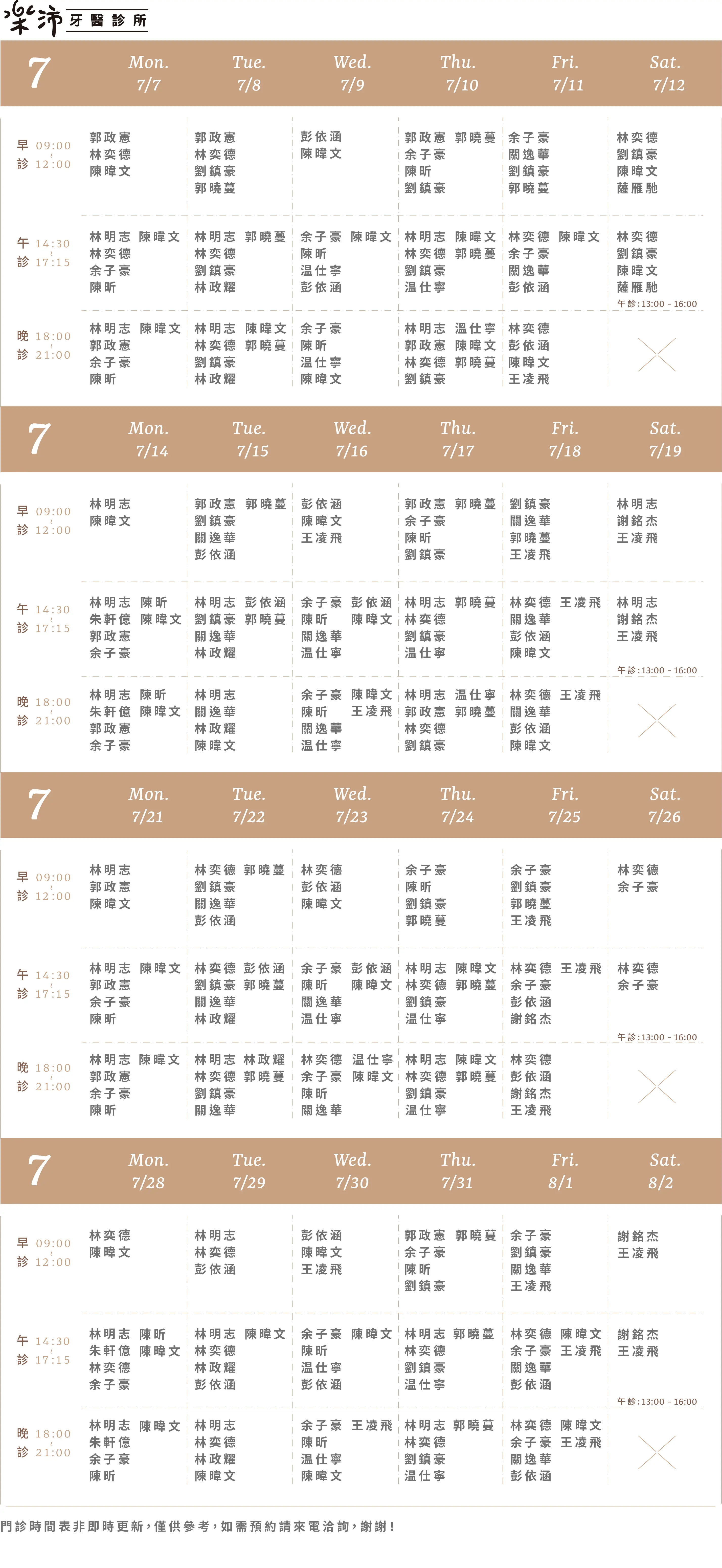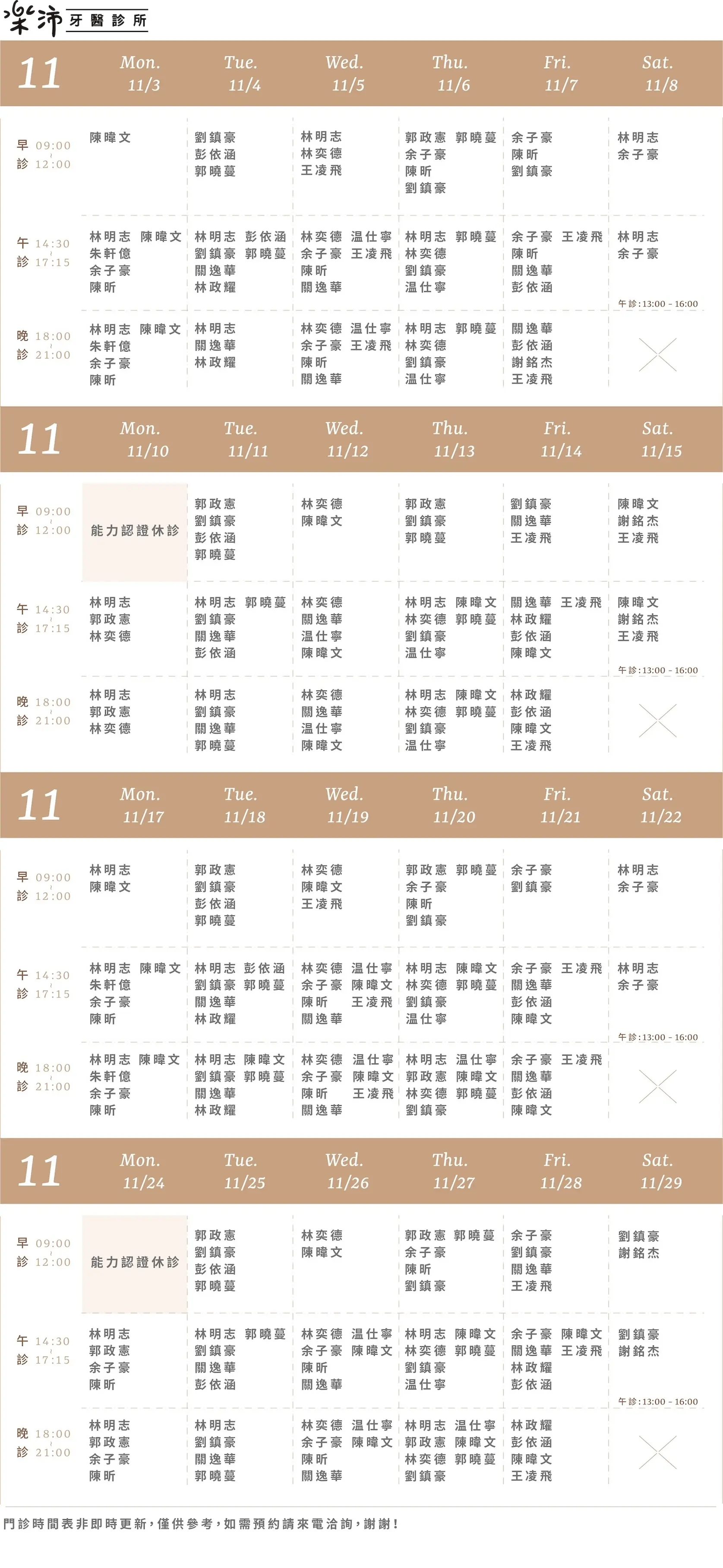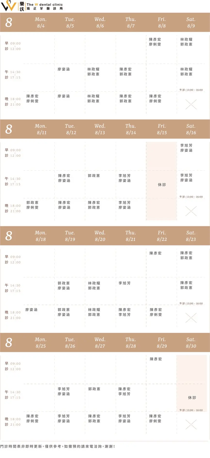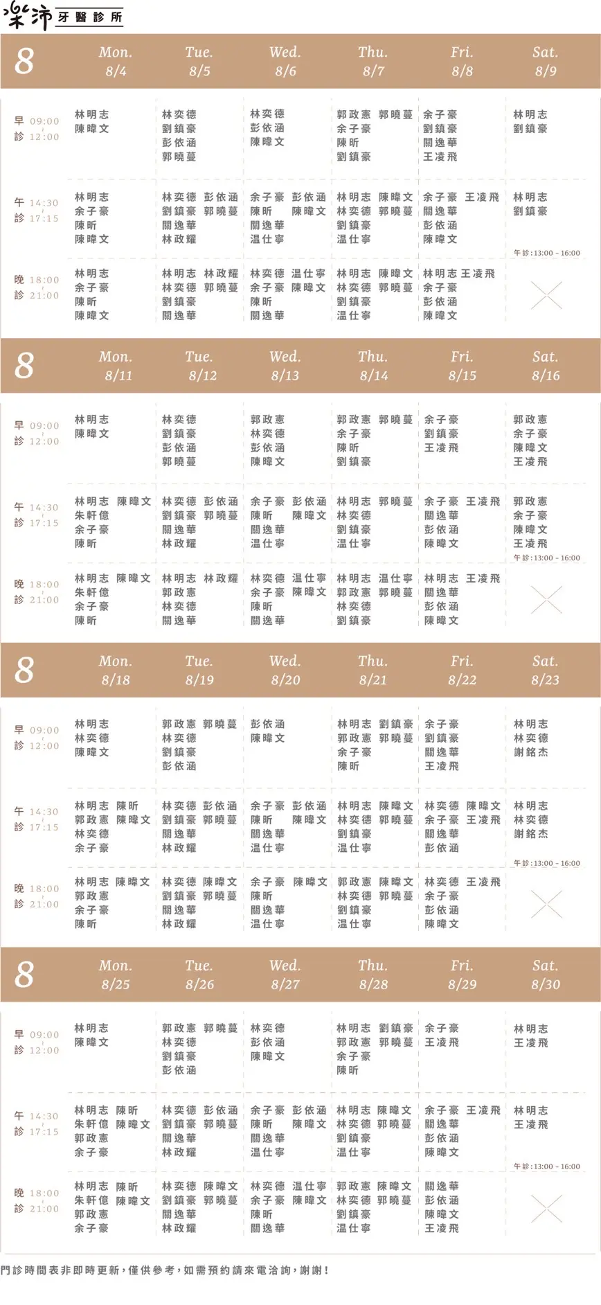 樂沛牙醫 樂芙兒童牙醫 樂陽牙醫 樂沃矯正牙醫 又青牙醫 本月下月 Information 診所資訊 03 377 0885 334桃園市八德區大智路131號 Google Map 自行線上約診 客服協助預約 本月下月 Information 診所資訊 03 363 8300 桃園市八德區廣豐三街8號1樓 Google Map 自行線上約診 客服協助預約 本月下月 Information 診所資訊 03 336 9995 330桃園市桃園區力行路385巷25號 Google Map 自行線上約診 客服協助預約 本月下月 Information 診所資訊 03 363 7380 334桃園市八德區公園路92號 Google Map 客服協助預約 本月下月 Information 診所資訊 03 287 7028 320桃園市中壢區高鐵站前西路二段59號 Google Map 客服協助預約