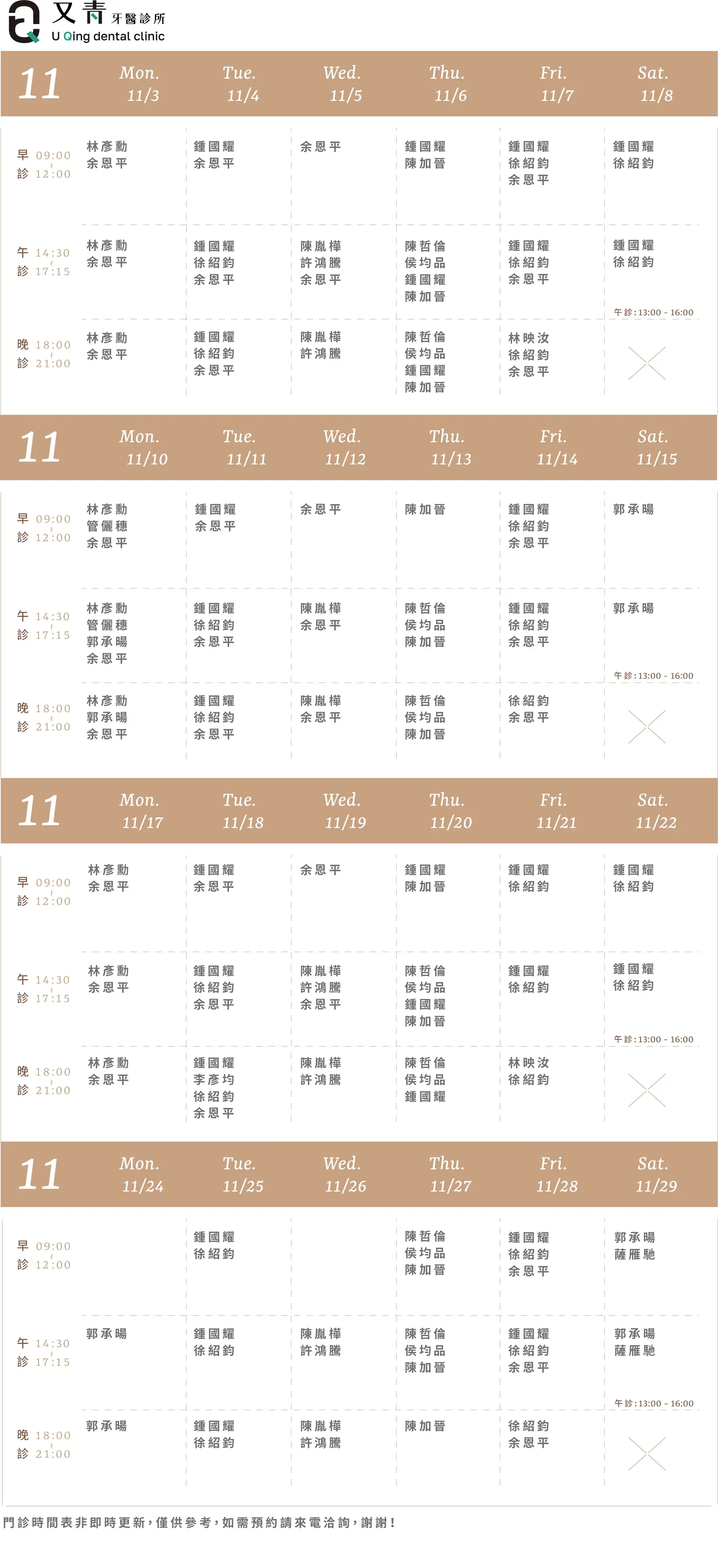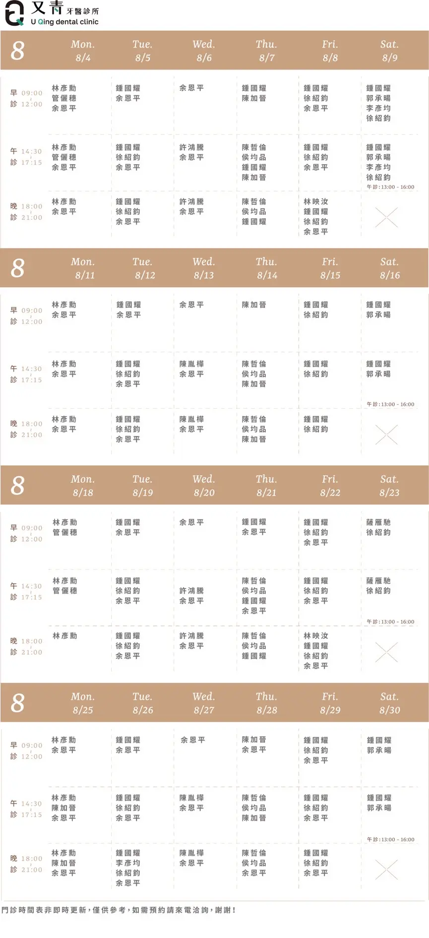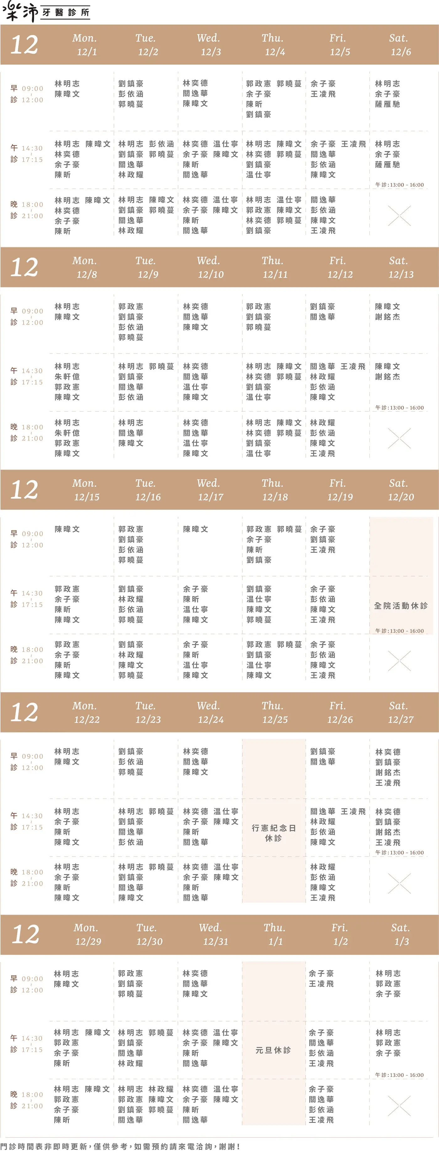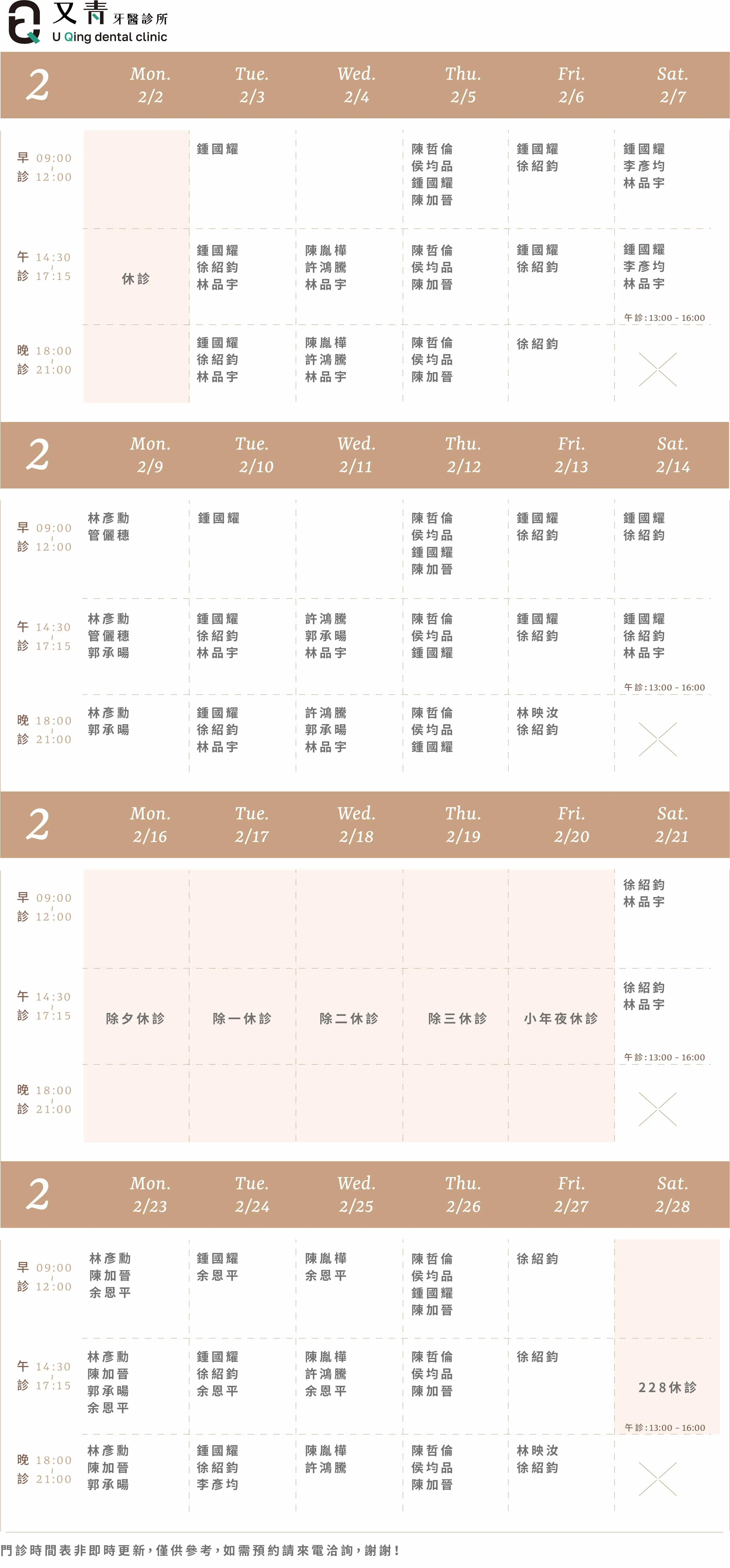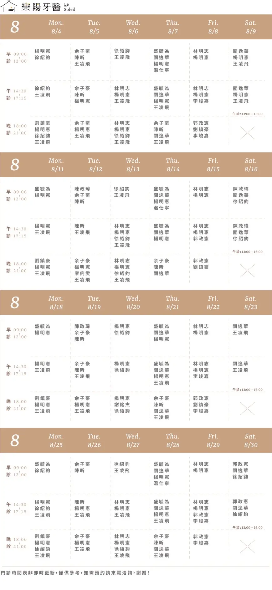 樂沛牙醫 樂芙兒童牙醫 樂陽牙醫 樂沃矯正牙醫 又青牙醫 本月下月 Information 診所資訊 03 377 0885 334桃園市八德區大智路131號 Google Map 自行線上約診 客服協助預約 本月下月 Information 診所資訊 03 363 8300 桃園市八德區廣豐三街8號1樓 Google Map 自行線上約診 客服協助預約 本月下月 Information 診所資訊 03 336 9995 330桃園市桃園區力行路385巷25號 Google Map 自行線上約診 客服協助預約 本月下月 Information 診所資訊 03 363 7380 334桃園市八德區公園路92號 Google Map 客服協助預約 本月下月 Information 診所資訊 03 287 7028 320桃園市中壢區高鐵站前西路二段59號 Google Map 客服協助預約
