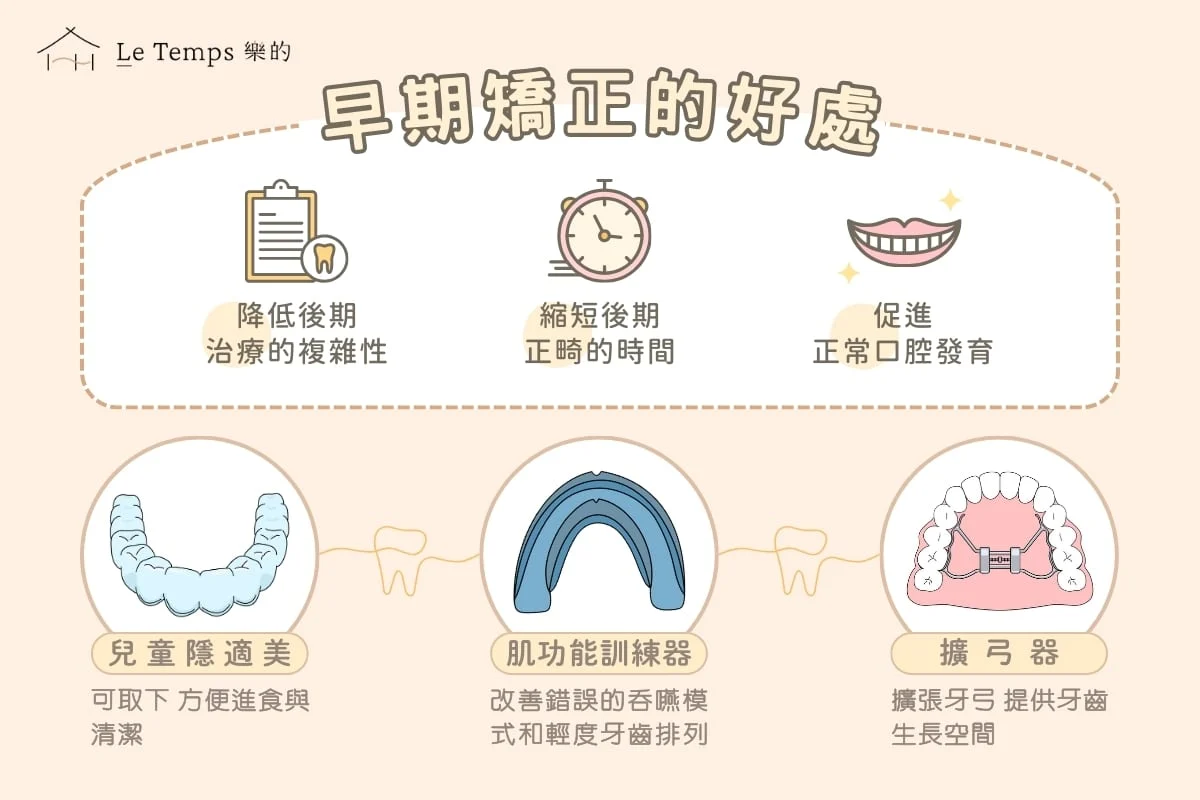 ➁ 縮短正畸時間:通過早期矯正,可以在恆牙長齊前調整顎骨和牙齒位置,減少後期矯正所需的時間。