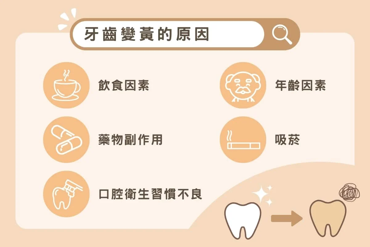 ➤ 牙齒變黃的原因?牙齒黃該如何處置?