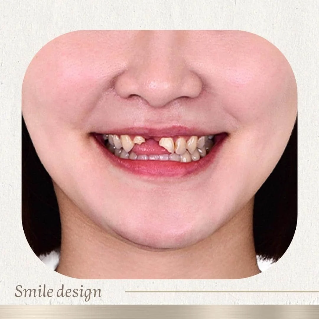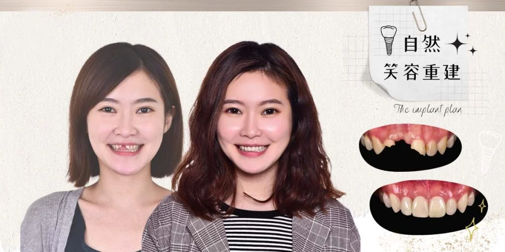▸右側門牙嚴重斷裂處以人工植牙重建牙根