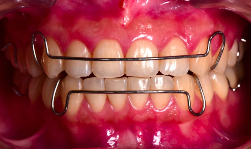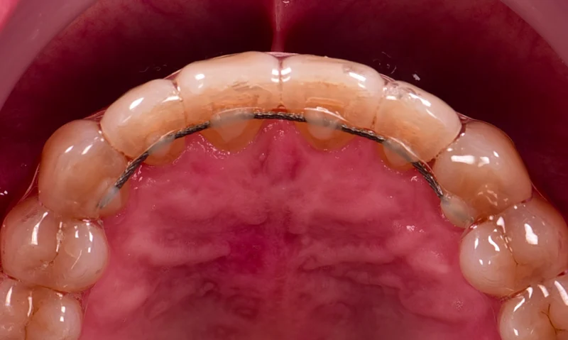 主要用於治療前有極度擁擠、旋轉、有空隙等易復發、跑位的病例。優點為只要沒鬆脫固持性良好、表面看不到很美觀,缺點為清潔不易、易產生結石,需要多加強清潔及定期(至少每半年)回診洗牙。
