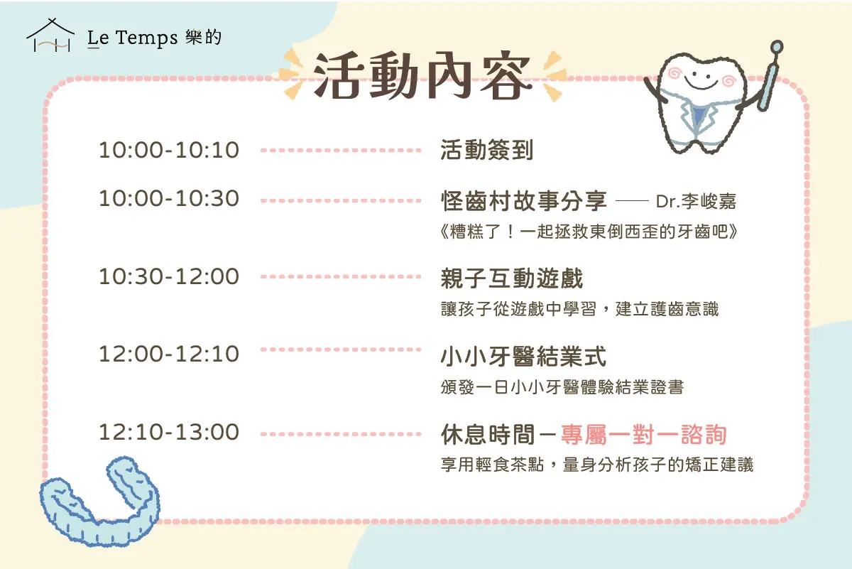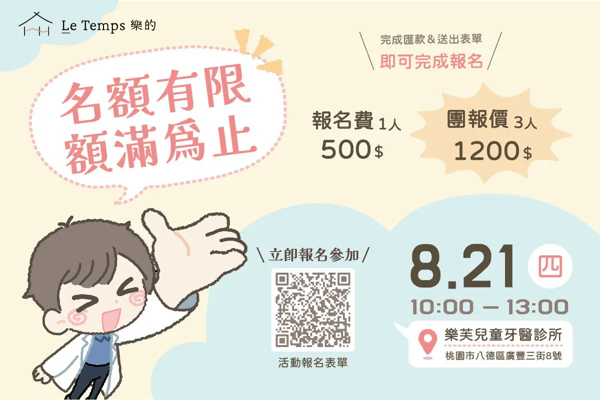 📍 活動地點:樂芙兒童牙醫診所(地址:桃園市八德區廣豐三街8號)