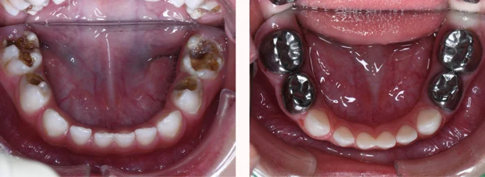 蛀牙範圍過大或是做過根管治療的乳牙,以選擇以金屬牙冠的方式保護!雖然顏色較不美觀但是非常耐用,可以保護到換恆牙,與乳牙一起脫落。