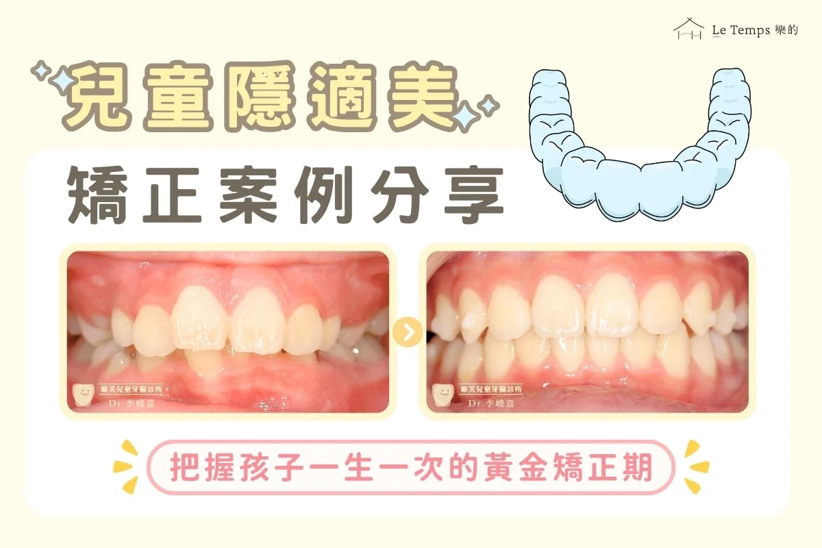 Invisalign® First 兒童隱適美 什麼是兒童隱適美? 兒童隱適美的特點 治療流程 適合對象 常見問題 相關院所 相關案例 精選案例 相關文章 01 什麼是兒童隱適美? 隱適美是隱形矯正、透明牙套的一種,隱適美矯正是一種使用較為創新的方式,能溫和、有效地移動牙齒,並透過專利smart track材質及SmartForce技術,搭配900萬個微笑大數據,製作專屬一系列的可摘式牙套。 兒童隱適美是一種專為兒童所設計的Invisalign®First矯正方案,適合6-12歲混合齒列階段的孩子,合併功能性矯正把牙齒排整齊的隱形矯正,讓孩子擁有除了傳統金屬矯正之外的矯正方式。 通常在混合齒列期間會是孩子的黃金矯正時期,此時做隱適美矯正的好處是能著重在齒槽骨的正確引導發育。小下巴、戽斗、齒列不正、深咬、暴牙等問題皆可以透過兒童隱適美引導發育,進而達到有效的改善。 02 兒童隱適美的特點 1.可預測性高 隱適美能夠透過Clinic Check Pro來模擬出最終的治療成果,搭配醫師的設計,能確保每一步都遵循最佳順序及時機。 2.不影響口腔清潔 因為隱適美能夠自由拆卸,清潔上較傳統矯正來的簡易,只需像平時一樣清潔牙齒即可。 3.矯正過程舒適度高 隱適美的專利技術讓患者在矯正期間舒適度提升,不會像傳統矯正器有刮破嘴的問題。 4.治療效果佳 把握孩子的黃金時期做治療,能有效引導後續生長,也能夠一併降低日後矯正的困難機率。 5.減少回診頻率 傳統矯正回診頻率大約3-4週,隱適美則可延長至6-8週,避免影響孩子課業及活動的安排。 6.美觀度高 外觀為透明無色,故不易被他人察覺,避免孩子感到不自在而影響人際關係。 03 治療流程 Step 1.初診評估 拍攝正顱、側顱以及全口X光片,並由專業醫施擬定專屬治療計畫。 Step 2.資料收集 拍攝矯正前的口腔內部照片,並進行數位口內掃描打造數位的治療計畫。 Step 3.確認治療計畫 透過電腦檢視模擬成果及所需時間,並與患者確認治療計畫。 Step 4.開始矯正療程 經醫師與患者討論治療計畫並同意後,則會開始製作專屬矯正器並送至診所,之後遵循醫囑配戴矯正器。 Step 5.定期回診追蹤 每次回診時醫師都會確認矯正進度,並取得下一個階段的矯正器。 6.矯正完成定期檢查 結束矯正療程後須持續佩戴維持器,並且定期回診檢查以避免牙齒再次移位。 04 適合對象 1.反咬、開咬、深咬 錯誤的咬合可能會造成孩子咀嚼不順、清潔不佳、咬合無法對齊或是其他美觀問題。 2.齒列不正、齒列擁擠 齒列擁擠的孩子在清潔上難度較高,若沒有清潔徹底則蛀牙的機會也將提高。 05 06 常見問題 Q1:兒童隱適美療程需要多長時間? 兒童隱適美通常較成人矯正更有效率,但矯正時間因人而異,一般需要12至18個月的時間,也可能一簡單或困難程度,時間有所差異,具體建議由矯正專科醫師實際評估所需時間。 Q2:兒童隱適美會不會影響兒童的飲食習慣? 兒童隱適美並不會影響兒童的飲食習慣,孩子們可以在進食前將牙套取下正常進食,只需在進食後正確清潔完牙齒,將牙套配戴回即可。 Q3:兒童隱適美是否會影響兒童的說話? 隱適美配戴初期可能會有一些說話不適應,但隨著時間的推移,兒童會適應新的矯正器,說話能力會逐漸恢復正常。 相關院所 樂芙兒童牙醫 樂陽牙醫診所 樂心牙醫診所 相關案例 兒童牙科/兒童隱適美 主治醫師 李峻嘉 治療時間 約1年2個月 主訴 上排前牙嚴重錯咬,咬在內側,影響咬合功能與口腔健康 兒童牙科/兒童隱適美 主治醫師 李峻嘉 治療時間 約1年6個月 主訴 暴牙、牙齒排列不整 兒童牙科/兒童隱適美 主治醫師 李峻嘉 治療時間 1年5個月 主訴 家長擔心小孩牙齒凌亂 兒童牙科/兒童隱適美 主治醫師 李峻嘉 治療時間 1年4個月 主訴 口呼吸、牙齒凌亂 兒童牙科/兒童隱適美 主治醫師 李峻嘉 治療時間 約14個月 主訴 下排牙齒排列凌亂、咬合不正 精選案例 「兒童隱適美」案例分享 10歲兒童的矯正之旅 2025-07-17 相關文章 害怕看牙這裡有撇步? 有什麼方法能減緩孩子看牙時的恐懼? 2025-09-05 兒童早期矯正怎麼選?關於早期矯正的關鍵解答 2025-09-05 早期矯正-金屬矯正器與MRC肌肉功能訓練器(myobrace)教學分享 2025-09-05